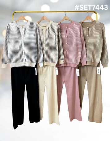 - Premium Stripe Cardigan n Long Pants Knit Set